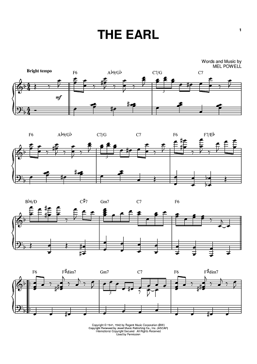Digital Sheet Music for The Earl by Benny Goodman, Mel Powell scored for Piano; id:370802