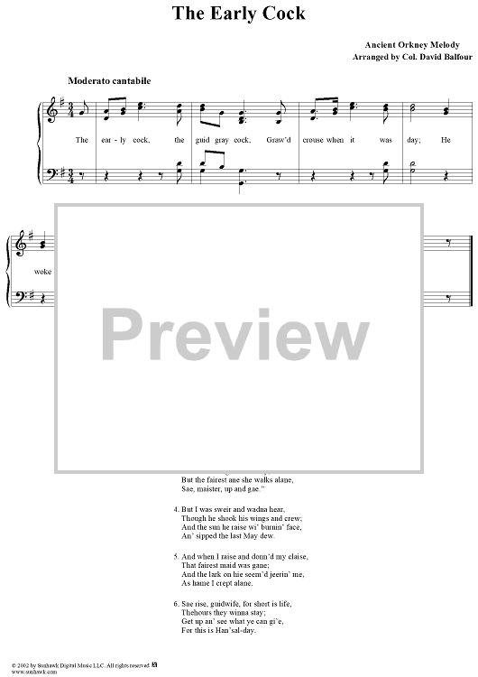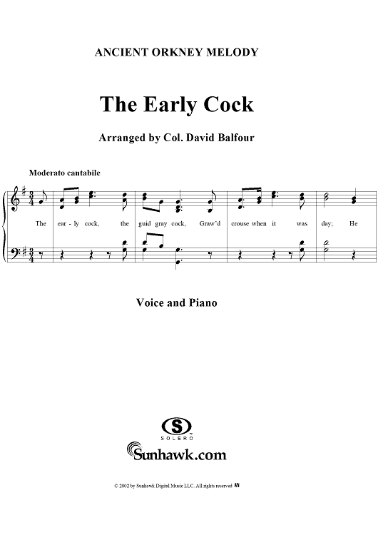 Digital Sheet Music for The Early Cock by Col. David Balfour scored for Voice/Piano; id:276418