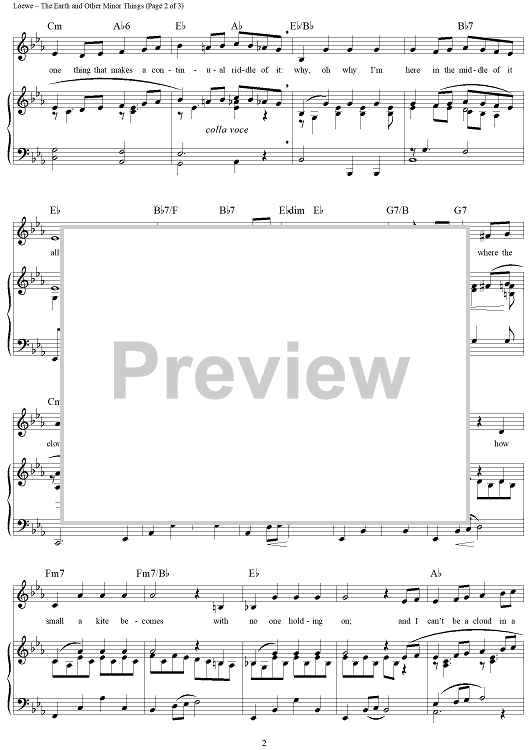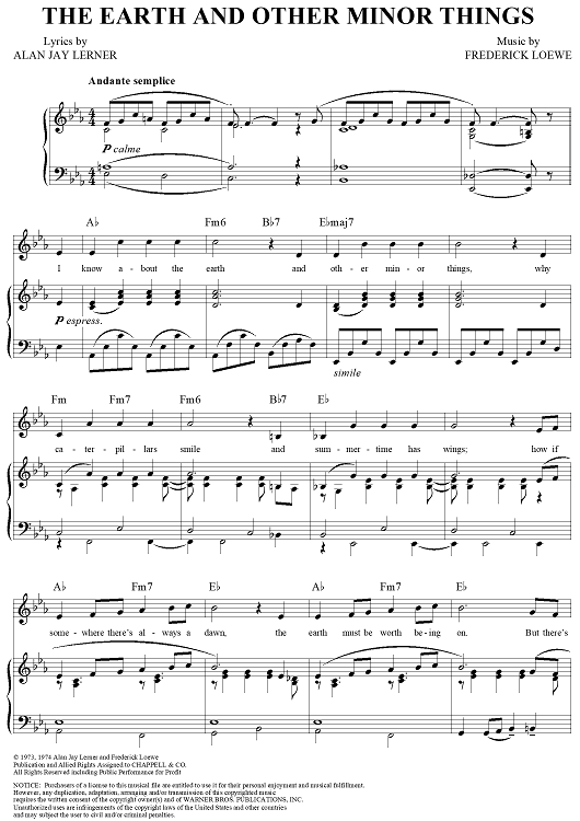 Digital Sheet Music for The Earth and Other Minor Things by Frederick Loewe, Alan Jay Lerner scored for Piano/Vocal/Chords; id:297845