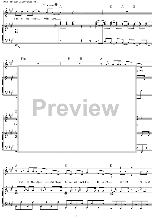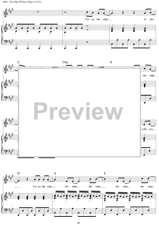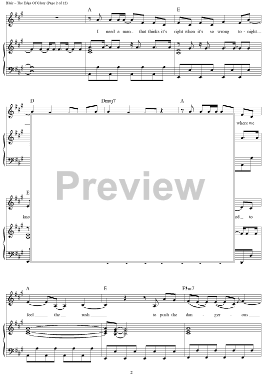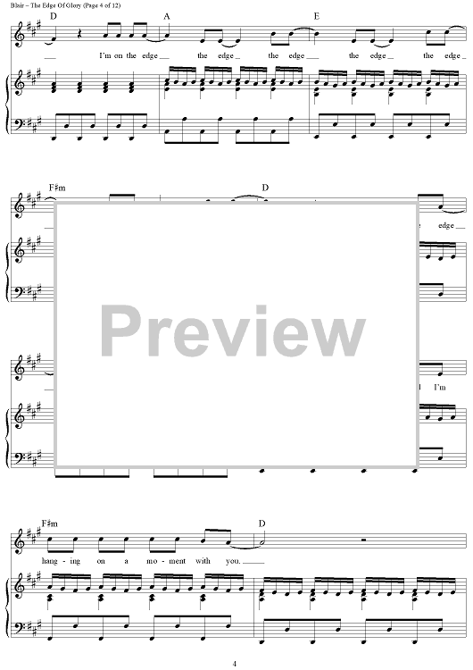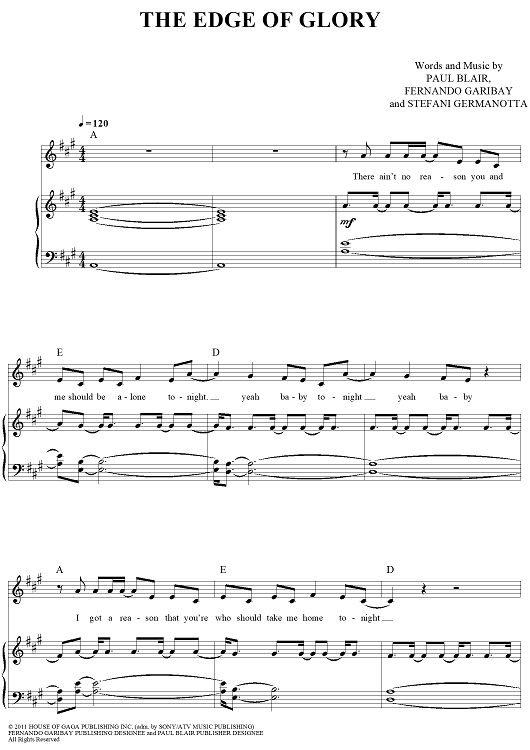 Digital Sheet Music for The Edge of Glory by Fernando Garibay, Stefani Germanotta, Lady Gaga, Paul Blair scored for Piano/Vocal/Chords; id:419681