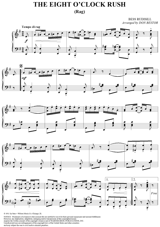 Digital Sheet Music for The Eight O'Clock Rush by Bess Rudisill, Don Bestor scored for Piano Solo; id:256231