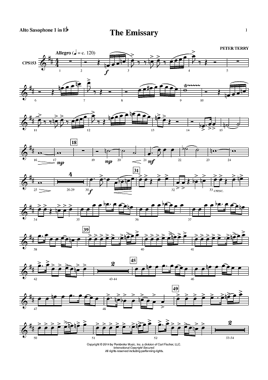 "The Emissary - Alto Saxophone 1" Sheet Music by Peter Terry