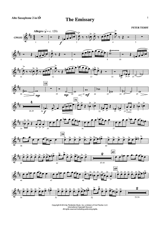 "The Emissary - Alto Saxophone 2" Sheet Music by Peter Terry