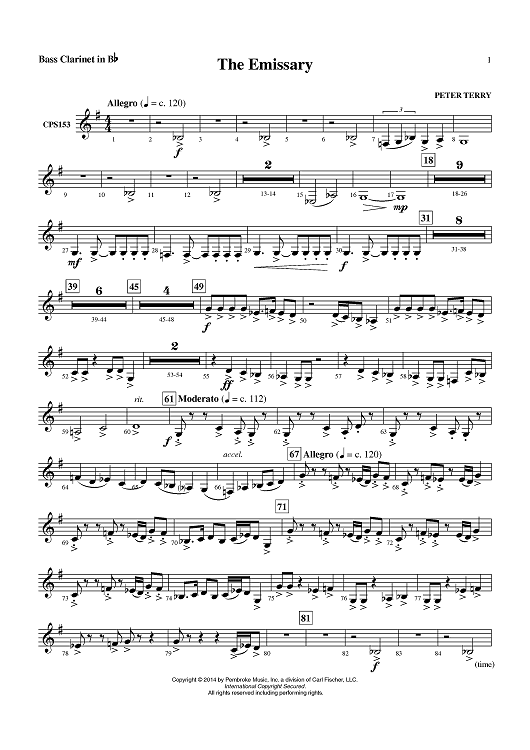 Digital Sheet Music for The Emissary - Bass Clarinet in Bb by Peter Terry scored for Concert Band; id:451010