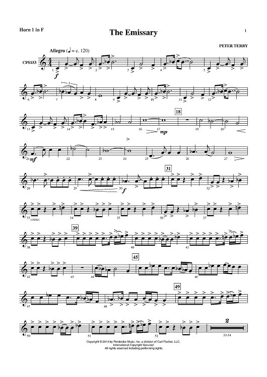 "The Emissary - Horn 1 in F" Sheet Music by Peter Terry