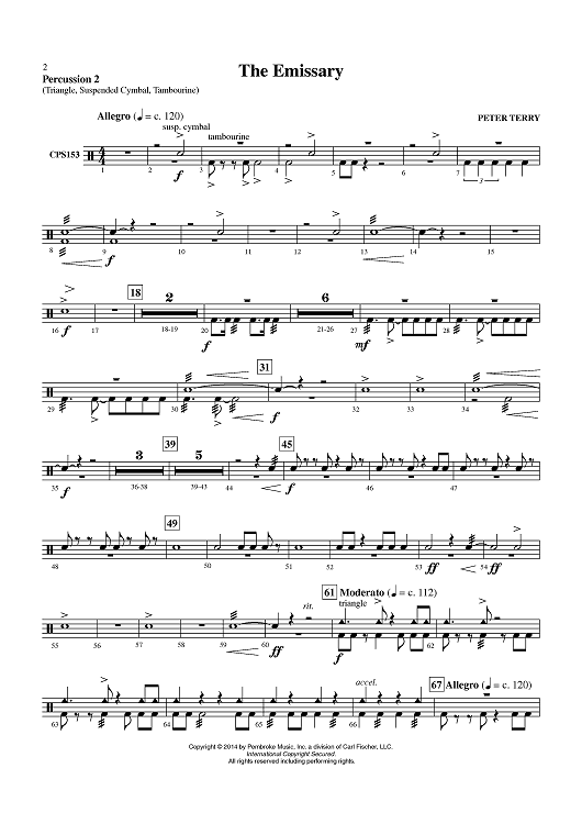 Digital Sheet Music for The Emissary - Percussion 2 by Peter Terry scored for Concert Band; id:451029