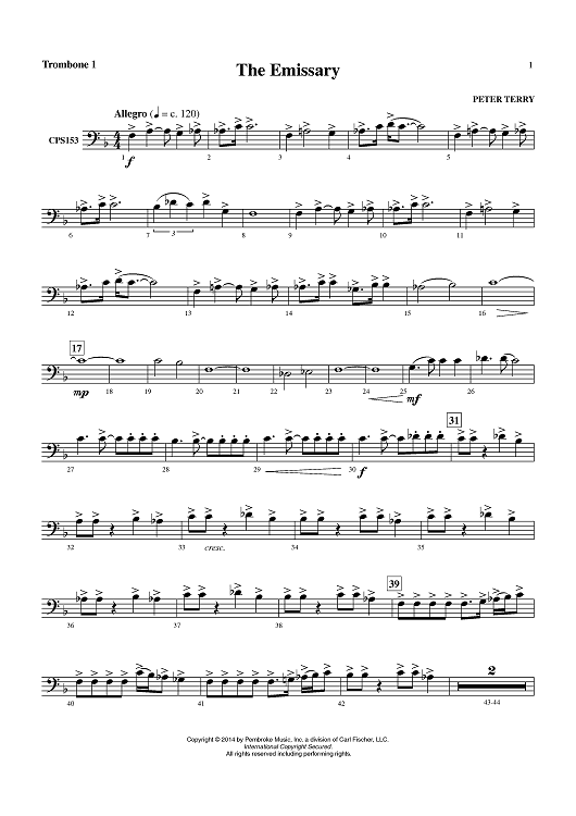 "The Emissary - Trombone 1" Sheet Music by Peter Terry
