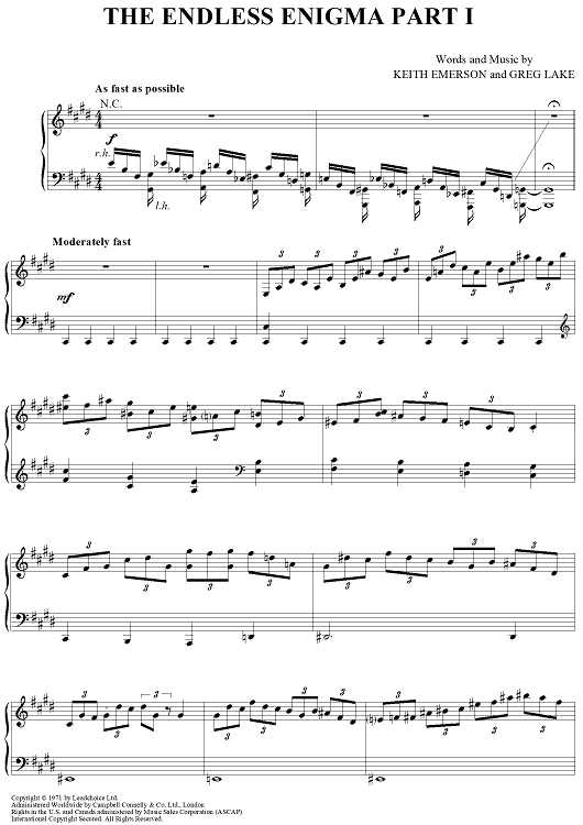 "The Endless Enigma Part I" Sheet Music by Emerson, Lake & Palmer