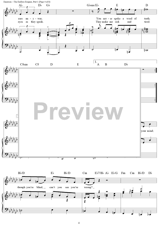 Digital Sheet Music for The Endless Enigma Part I by Greg Lake, Emerson, Lake & Palmer, Keith Emerson scored for Piano/Vocal/Chords; id:437845