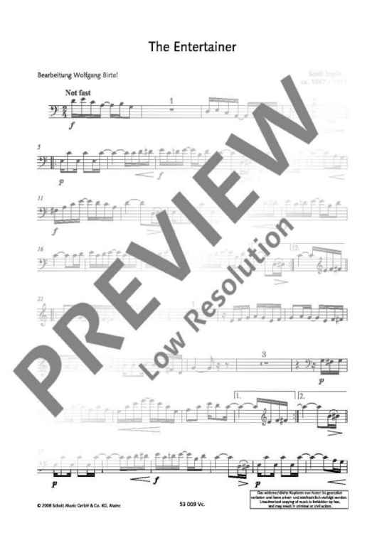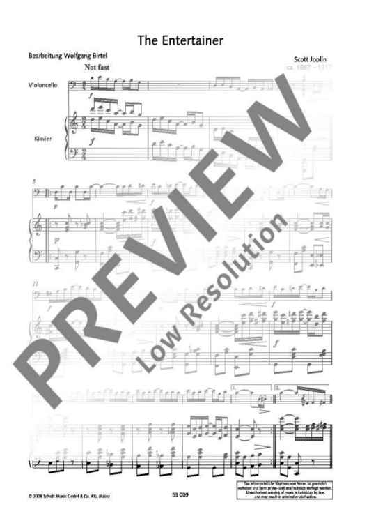 Digital Sheet Music for The Entertainer by Scott Joplin, Wolfgang Birtel scored for Cello And Piano; id:490605