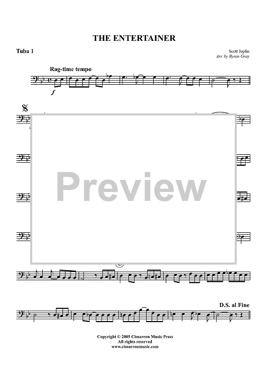 Digital Sheet Music for The Entertainer - Tuba 1 by Scott Joplin, Byron Gray scored for Tuba Quartet; id:319666