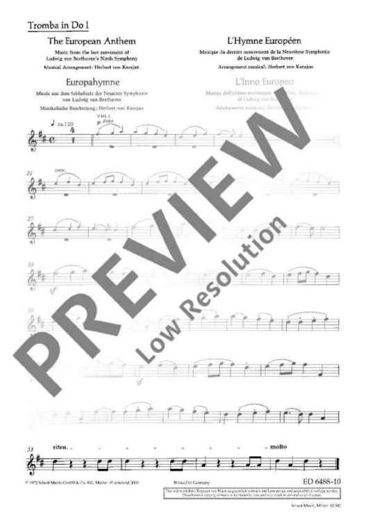 "The European Anthem - Set of Parts" Sheet Music by Ludwig van Beethoven
