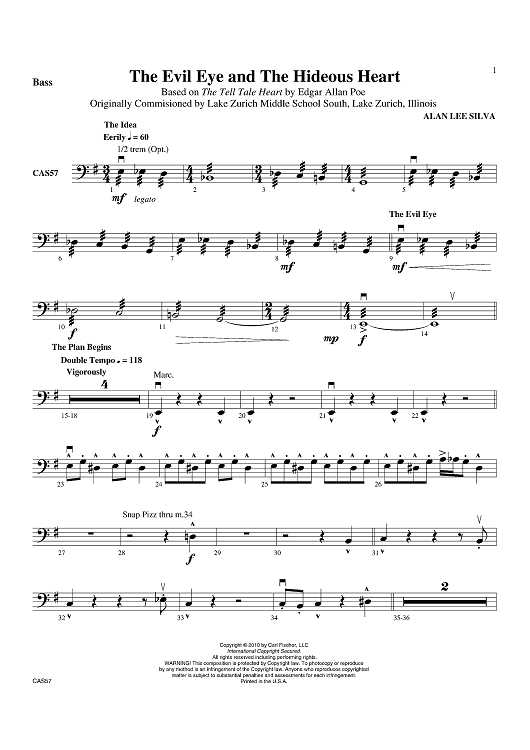 "The Evil Eye and the Hideous Heart - Bass" Sheet Music by Alan Lee Silva