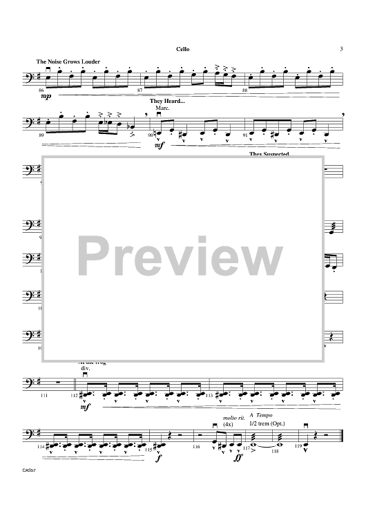 Digital Sheet Music for The Evil Eye and the Hideous Heart - Cello by Alan Lee Silva scored for Orchestra; id:410972