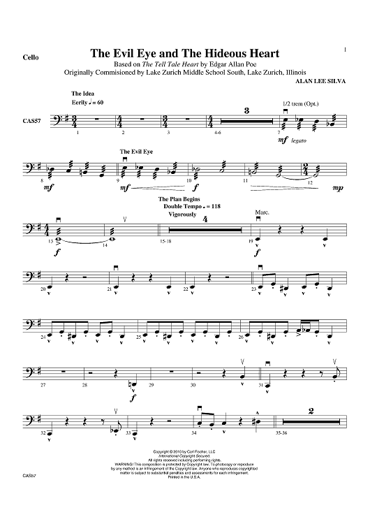 "The Evil Eye and the Hideous Heart - Cello" Sheet Music by Alan Lee Silva