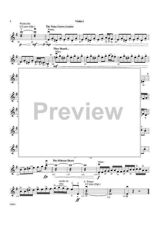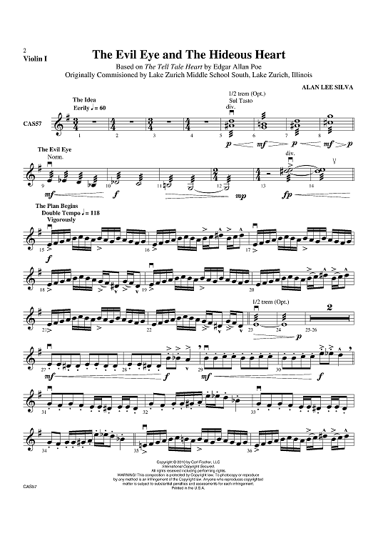 "The Evil Eye and the Hideous Heart - Violin 1" Sheet Music by Alan Lee Silva