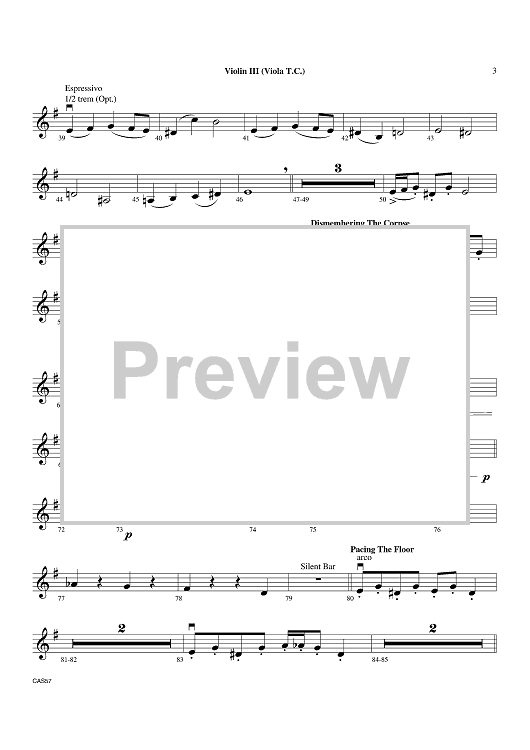Digital Sheet Music for The Evil Eye and the Hideous Heart - Violin 3 by Alan Lee Silva scored for Orchestra; id:410970