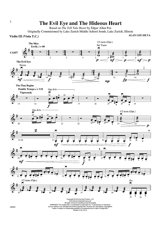 "The Evil Eye and the Hideous Heart - Violin 3" Sheet Music by Alan Lee Silva