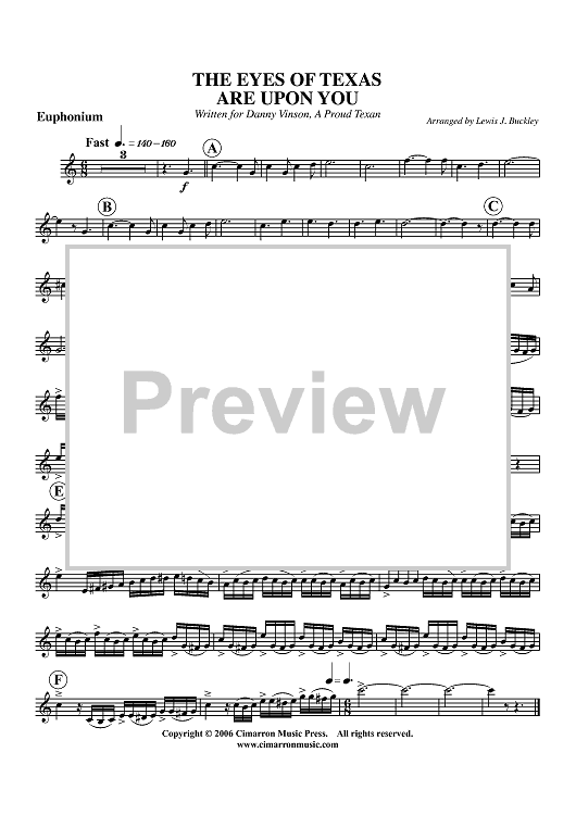 "The Eyes of Texas Are Upon You - Euphonium BC/TC" Sheet Music by