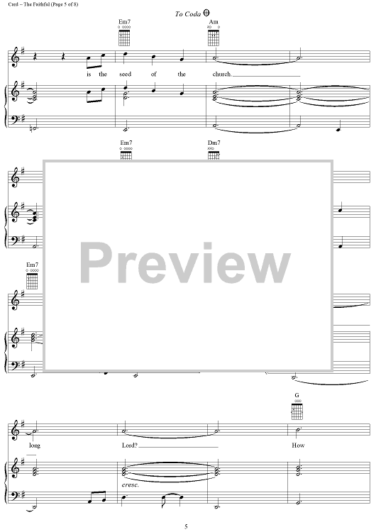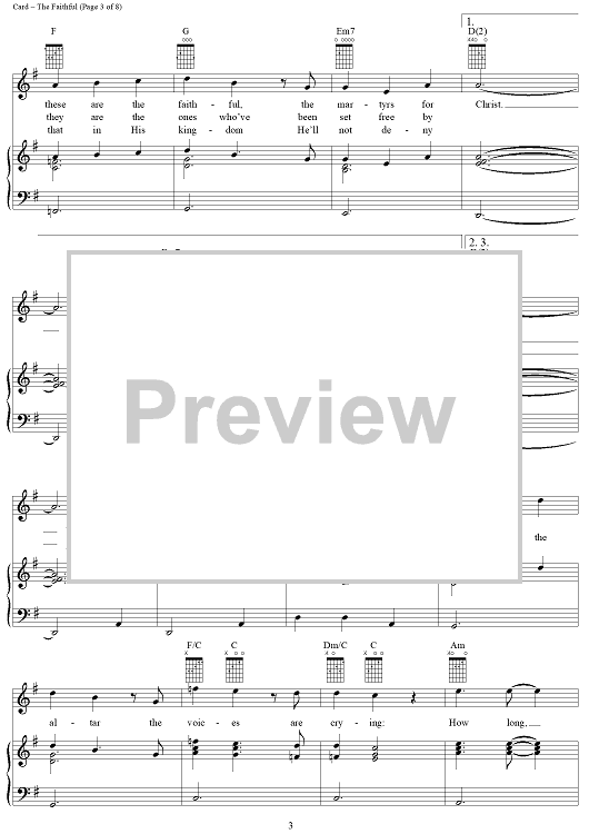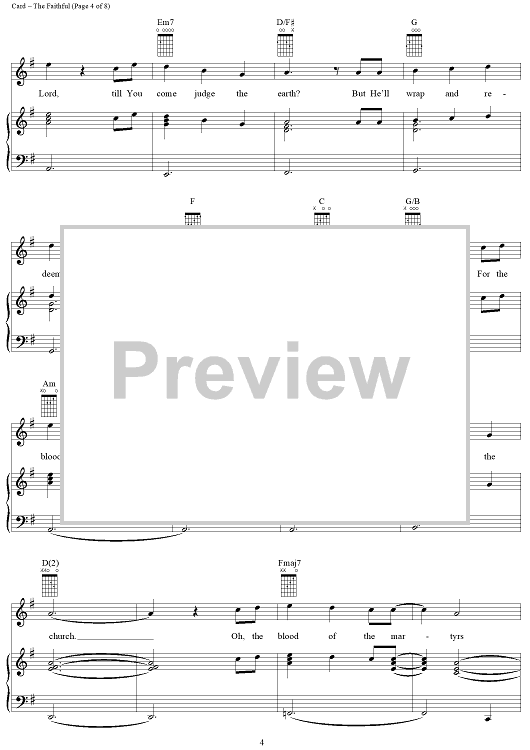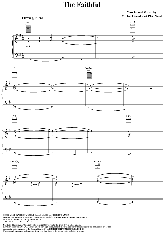 Digital Sheet Music for The Faithful by Michael Card, Steve Green, Phil Naish scored for Piano/Vocal/Chords; id:119628