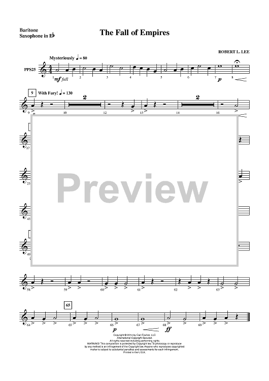 Digital Sheet Music for The Fall of the Empires - Baritone Sax by , Robert L. Lee scored for Concert Band; id:452486