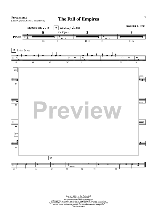 Digital Sheet Music for The Fall of the Empires - Percussion 2 by , Robert L. Lee scored for Concert Band; id:452497