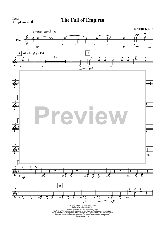 Digital Sheet Music for The Fall of the Empires - Tenor Sax by , Robert L. Lee scored for Concert Band; id:452485