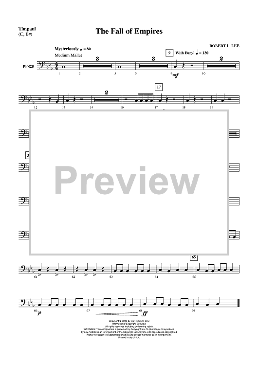 Digital Sheet Music for The Fall of the Empires - Timpani by , Robert L. Lee scored for Concert Band; id:452495