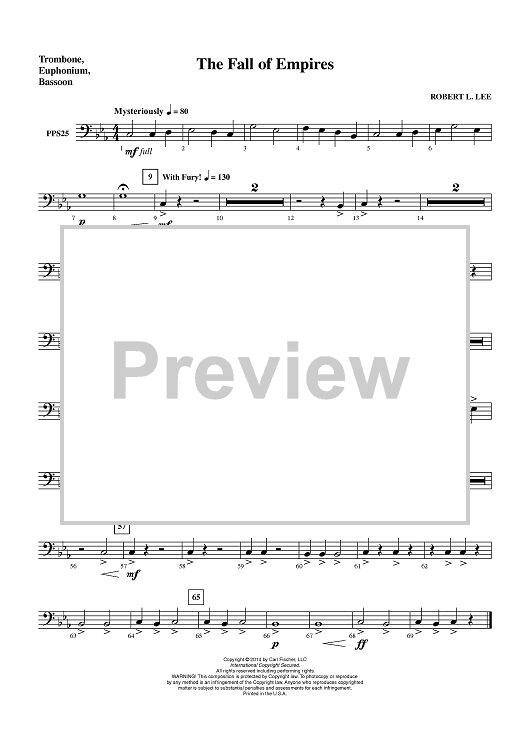 Digital Sheet Music for The Fall of the Empires - Trombone, Euphonium BC, Bassoon by , Robert L. Lee scored for Concert Band; id:452491