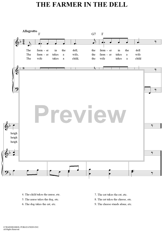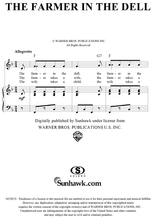 Digital Sheet Music for The Farmer in the Dell by scored for Piano/Vocal/Chords; id:116210