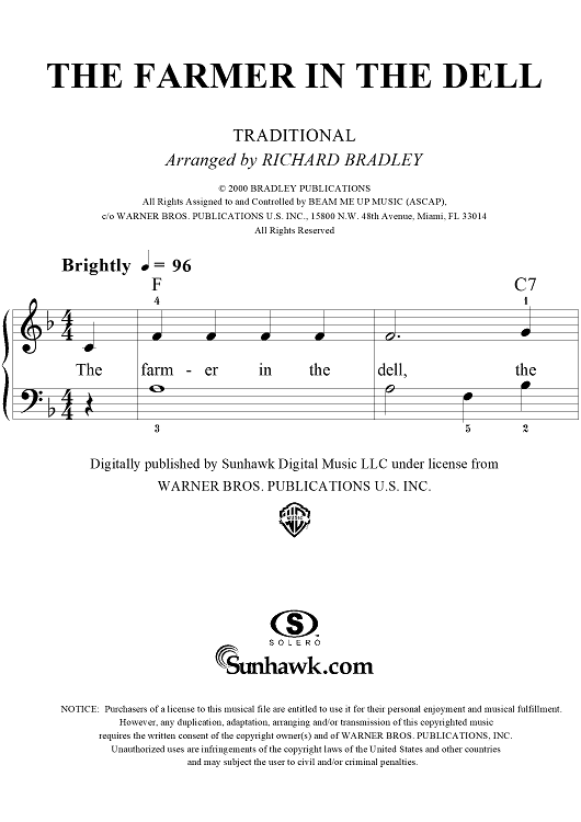 Digital Sheet Music for The Farmer in the Dell by Richard Bradley, Traditional scored for Easy Piano/Vocal; id:285540