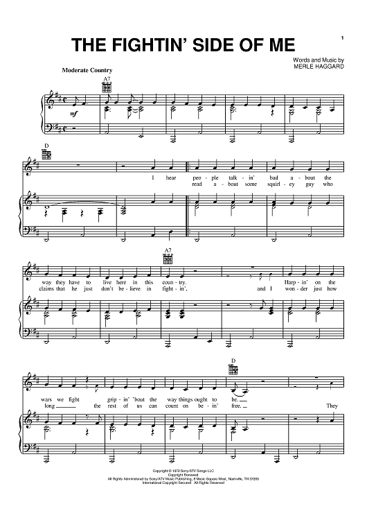 "The Fightin' Side Of Me" Sheet Music by Merle Haggard
