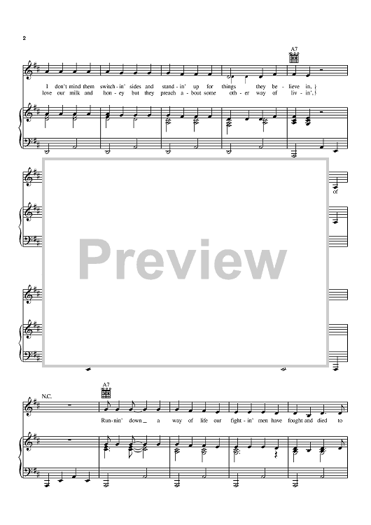Digital Sheet Music for The Fightin' Side Of Me by Merle Haggard scored for Piano/Vocal/Chords; id:384595