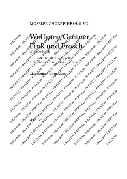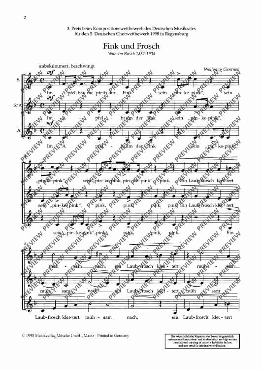 "The finch and the frog - Choral Score" Sheet Music by Wolfgang Gentner
