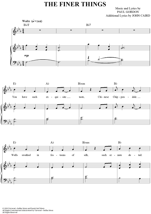 Digital Sheet Music for The Finer Things by Paul Gordon, John Caird scored for Piano/Vocal/Chords; id:293256