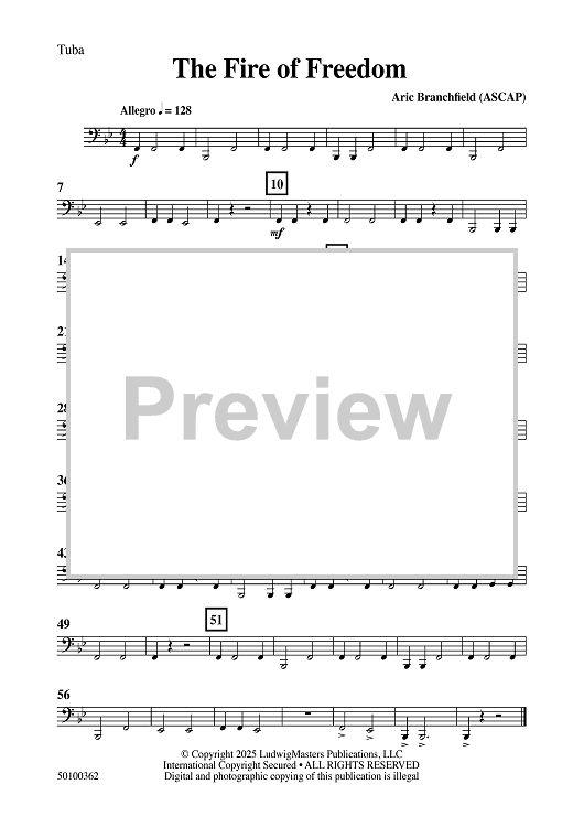 Digital Sheet Music for The Fire of Freedom - Tuba by Aric Branchfield scored for Concert Band; id:509318