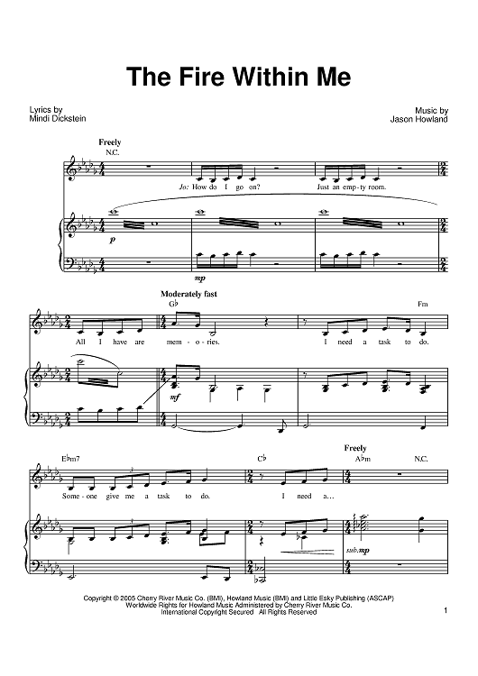 Digital Sheet Music for The Fire Within Me by Mindi Dickstein, Jason Howland scored for Piano/Vocal/Chords; id:385246