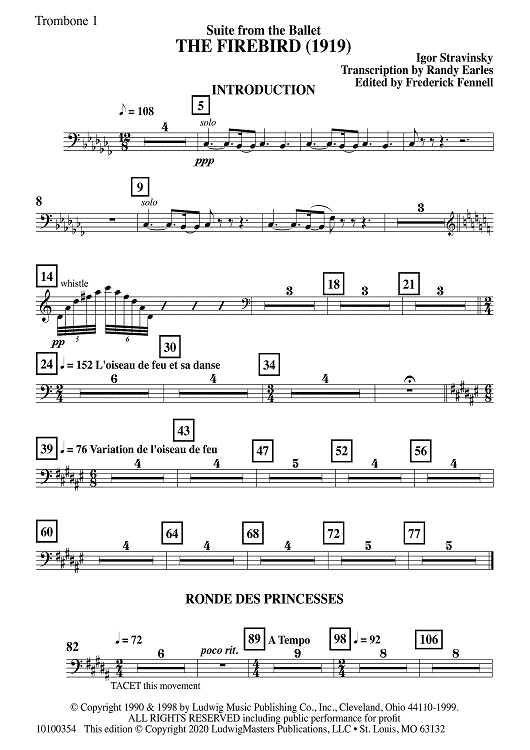Digital Sheet Music for The Firebird Suite for Symphonic Band - Trombone 1 by Igor Stravinsky, Randy Earles scored for Concert Band; id:502597