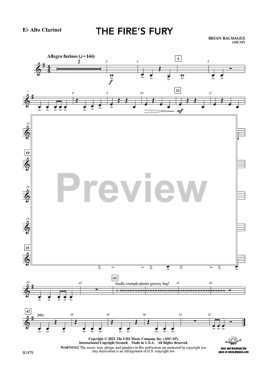 Digital Sheet Music for The Fire’s Fury - Eb Alto Clarinet by Brian Balmages scored for Concert Band; id:498792