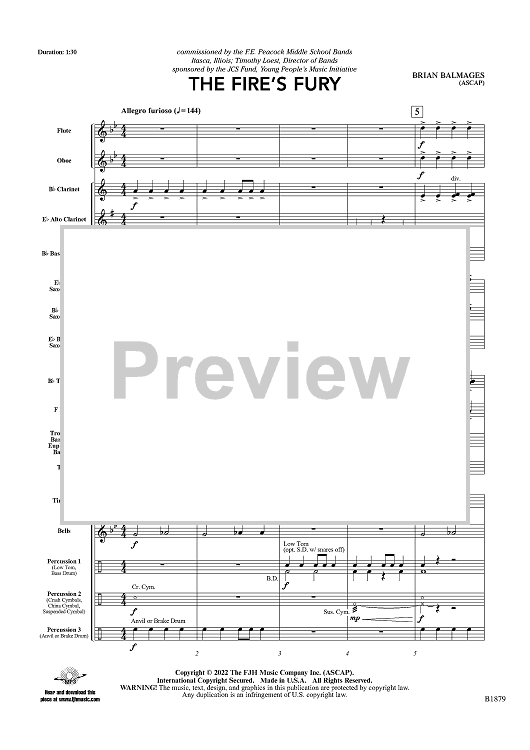 Digital Sheet Music for The Fire’s Fury - Score by Brian Balmages scored for Concert Band; id:498787