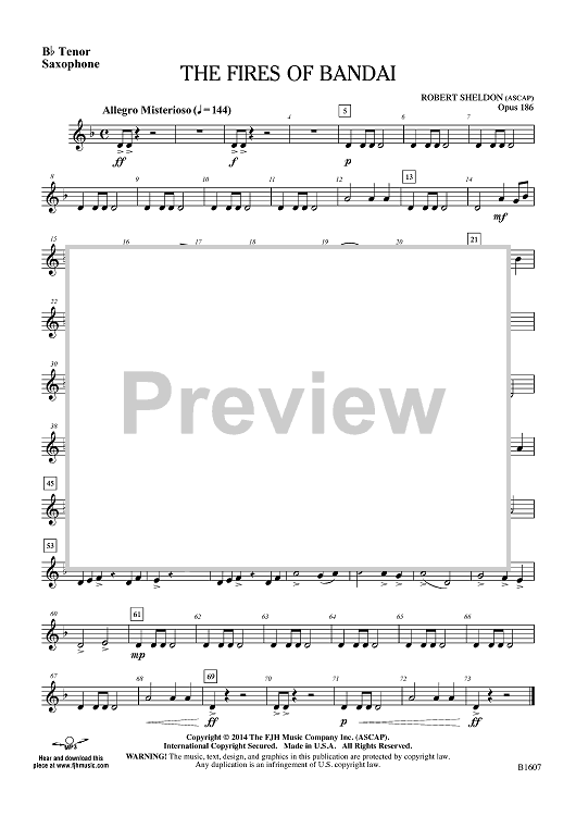 Digital Sheet Music for The Fires of Bandai - Bb Tenor Sax by Robert Sheldon scored for Concert Band; id:447766