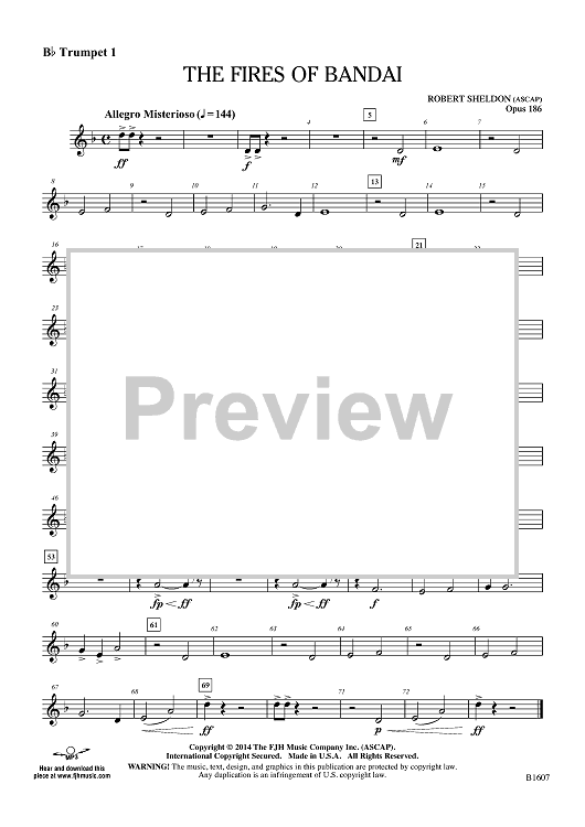 Digital Sheet Music for The Fires of Bandai - Bb Trumpet 1 by Robert Sheldon scored for Concert Band; id:447768