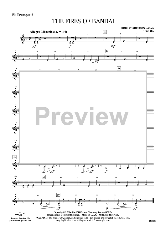Digital Sheet Music for The Fires of Bandai - Bb Trumpet 2 by Robert Sheldon scored for Concert Band; id:447769