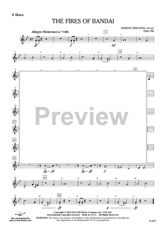 Digital Sheet Music for The Fires of Bandai - F Horn by Robert Sheldon scored for Concert Band; id:447770