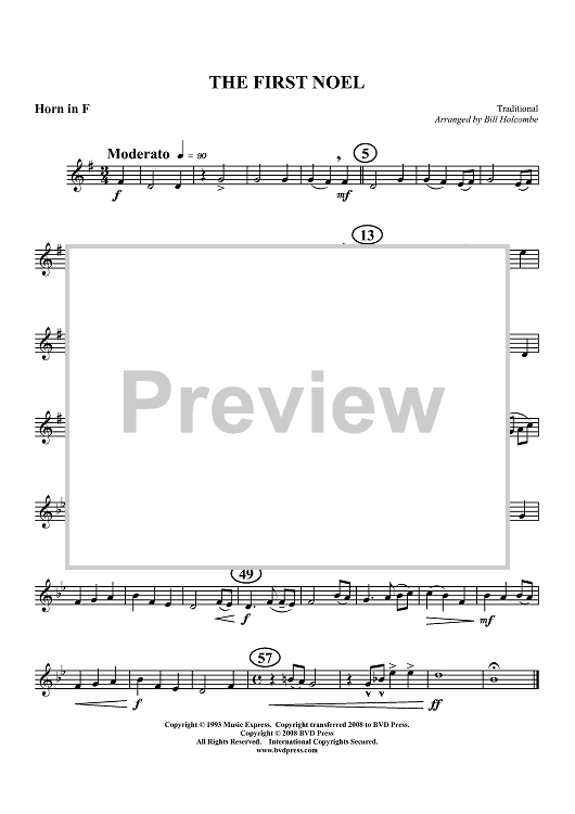 Digital Sheet Music for The First Noel - Horn in F by , Traditional, Bill Holcombe scored for Brass Quintet; id:411767