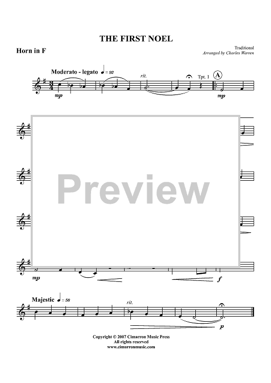 Digital Sheet Music for The First Noel - Horn in F by Charles Warren, Traditional scored for Brass Quintet; id:424385
