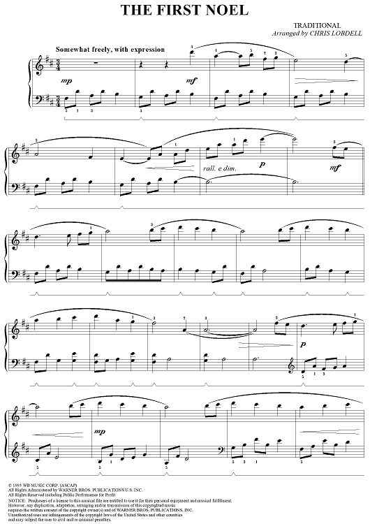 Digital Sheet Music for The First Noel by Chris Lobdell, Traditional scored for Piano Solo; id:116193