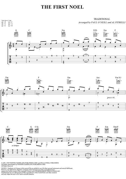 Digital Sheet Music for The First Noel by Trans-Siberian Orchestra, Paul O'Neill, Al Pitrelli, Traditional scored for Guitar Tab; id:260945