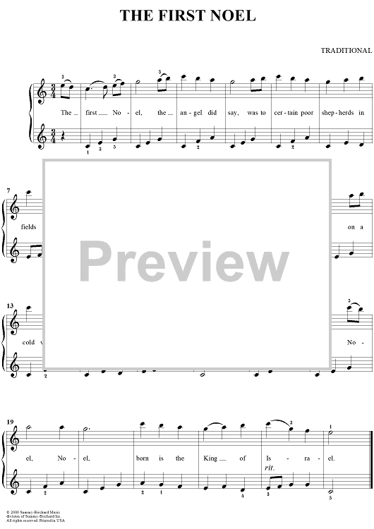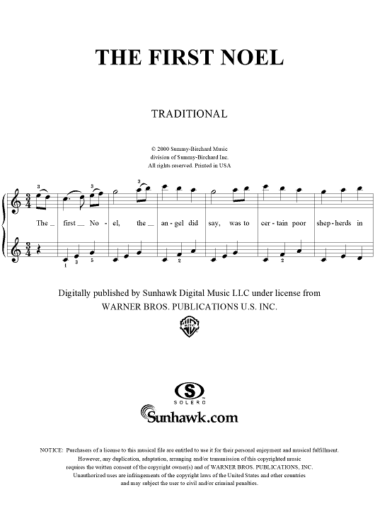 Digital Sheet Music for The First Noel by Susan Baker, Traditional scored for Easy Piano/Vocal; id:293049