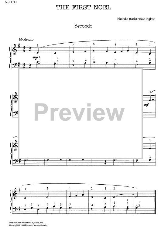 Digital Sheet Music for The first noel by Enrico Battistoni, Traditional scored for 1 Piano, 4 Hands; id:352456